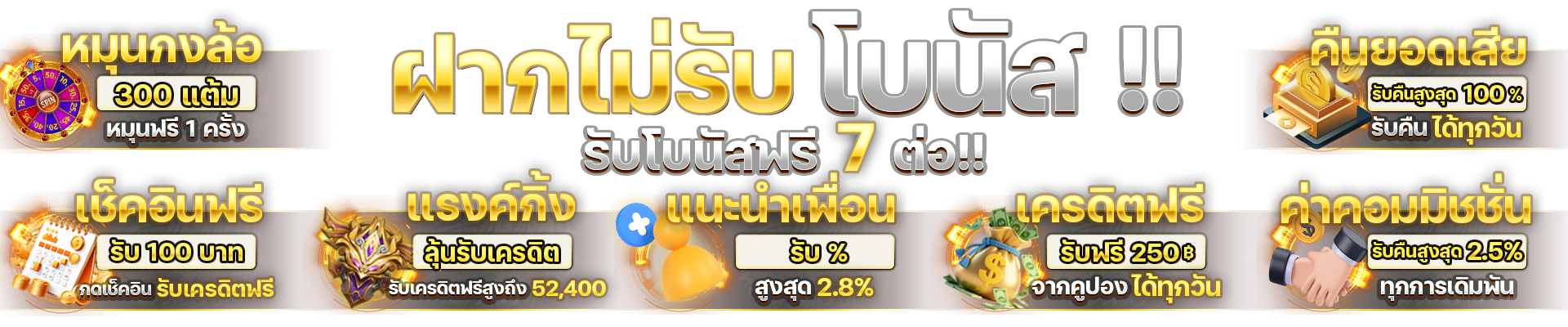 ตอบ : มีโบนัสต้อนรับสมาชิกใหม่ 100% โบนัสฝากประจำวัน คืนยอดเสีย แจกเครดิตฟรี และกิจกรรมแจกรางวัลพิเศษตลอดทั้งปี